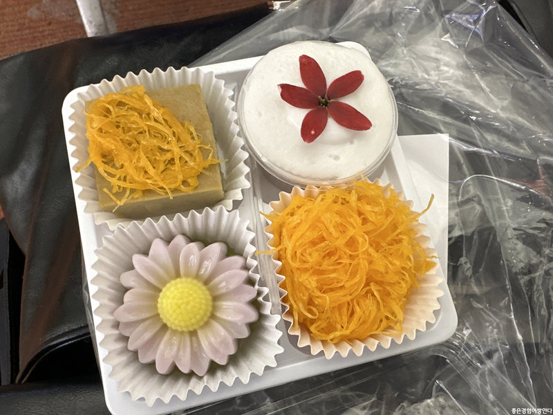 좋지 않았던 일은 모두 잊고, 마지막 날을 잘 보내려고 이리저리 돌아다니다 비행기 시간에 맞춰 호텔로 돌아와 샤워하고 짐을 찾았다. 근데 직원분이 줄 게 있다며 가지고 나온 이 선물. 태국 디저트와 손수 적으신 편지였다.