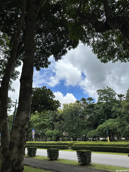 그래서 캠퍼스로 천천히 걸어 들어갔다. 걷다가 본 푸른 하늘, 초록초록한 나무들이 좋아 더운지도 몰랐다.