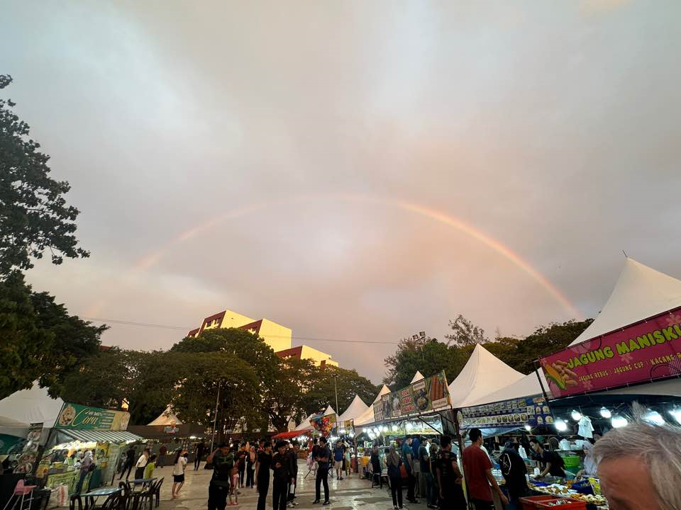 이젠 야시장에서 저녁식사를 해야지 하고 한바퀴 둘러보는데 예쁜 무지개가 떴다. 해변엔 노을이, 야시장엔 멋진 무지개가 나를 반겨주는 듯했다.