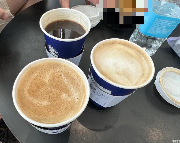따뜻한 티, 에이드, 커피까지 시켜서 마셨다. 라떼 아트가 너무 예뻤다.